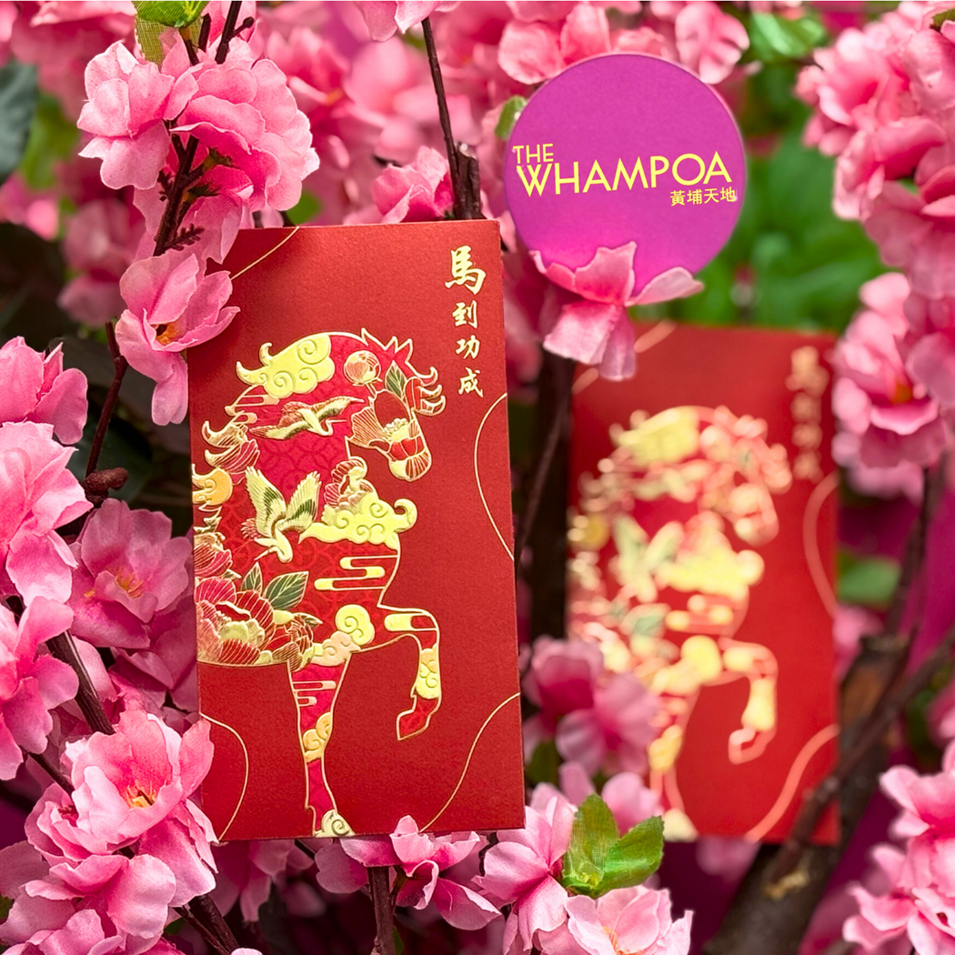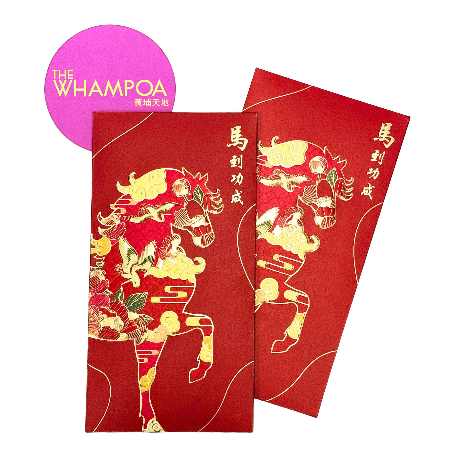 與此同時,黃埔天地精心準備了氣派華貴的「駿馬獻瑞利是封」和大家一起迎接馬年吉運!利是封整體設計融合傳統文化與現代美學,以底蘊深厚的中華意象為靈感,選用象徵吉祥與熱情的緋紅為底色,上面以金色流線勾勒出一頭躍然奔騰、氣勢非凡的祥馬剪影。馬身主體由深淺不一的銅錢圖案構成,祝願財源滾滾、大富大貴;在其之上以燙金及浮雕技術細緻描繪了繁花盛放、祥雲繚繞、仙鶴展翅等精緻花紋,寓意百花齊放,福氣臨門,前程似錦。栩栩如生的祥馬奔騰而來,送上新春佳節的喜慶與祝福。