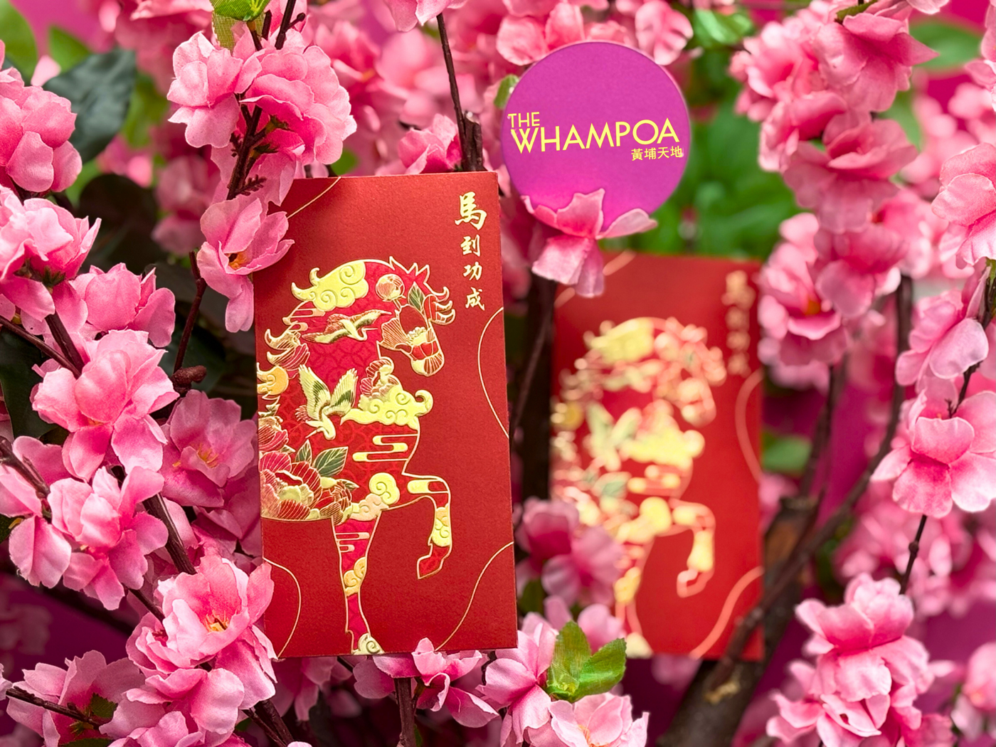 由1月30日起,於黃埔天地即日以電子貨幣消費滿HK$200或以上,即可免費換領「駿馬獻瑞利是封」乙套(每套包含8個利是封),先到先得,換完即止,快趁新春來黃埔天地辦年貨及置新裝,把吉祥好運領回家!