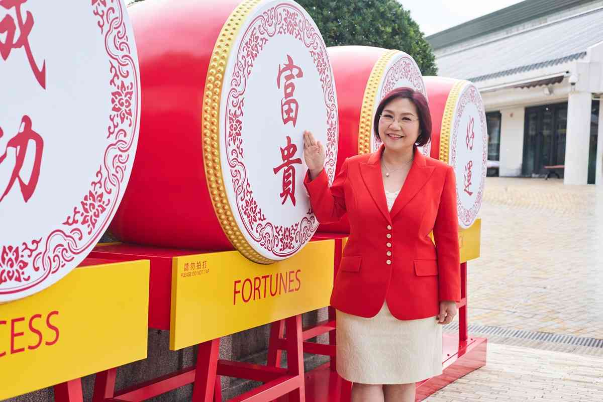 而在菩提樹旁的「金禧福袋賀新歲」,賓客可踏進巨型福袋中,與堆滿的金元寶以及可愛駿馬合照,象徵新一年「財福環抱、金銀滿屋」!麥玲玲師傅指兩個裝置的佈局寓意十足,聚集滿滿的祝福和好運,令人感受到旺盛的正能量!