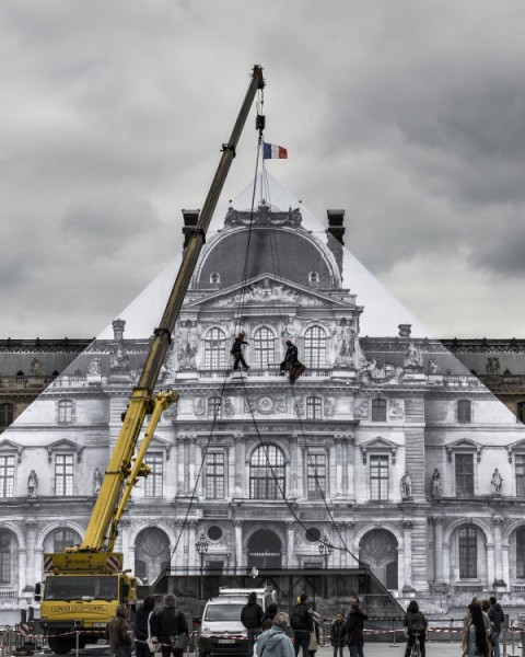 藝術家JR擅長大型的相片創作,過往的作品以黑白影像及人像為主,最近的「JR au Louvre」同樣用上黑白的影像,但題材不是人物,而是玻璃金字塔背後的羅浮宮一隅。JR以照片覆蓋金字塔的一面,站在某個角度看,會有玻璃金字塔消失的錯覺;隨著時間的轉移,羅浮宮的景象變換萬千,如歷史遺物的黑白相片與真實的羅浮風光每刻相映出不同的畫面。今次的計劃當然不是用來安撫不喜歡玻璃金字塔者,對於JR,公共空間是他創作的場地,他重視放置相片的地點,以及地點賦予相片的意義,「JR au Louvre」除了有此藝術裝置,在5月28日至29日期間更舉辦了工作坊、電影分享會、音樂及舞蹈表演等活動。公共空間是用來創作的,是屬於大眾的,只有開放的空間才有更多的可能性。