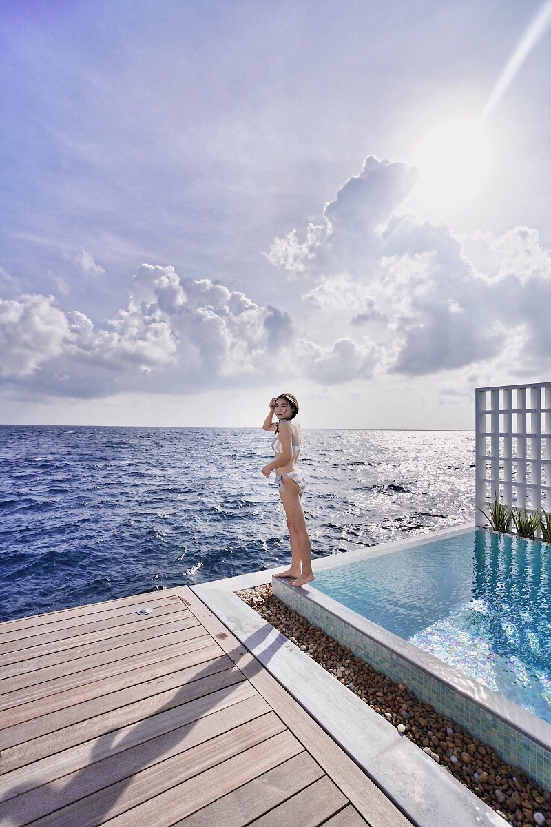 好多讀者都會問我:究竟你有多少件泳衣?說實話...真的不少啊!因為Keep住要去陽光與海灘,不可能一件泳衣闖天下!一般來就,我去海邊Resort,至少會帶2-3件泳衣。這是一個很實際的數量,因為每天都會有水上活動,泳衣根本不會乾的,所以2-3件是實際需要的。Conrad Maldives很多水上活動都是免費的,海上獨木舟,浮潛呀!而且酒店處處都是浮潛景點,處處都可以近距離看到魚,所以每天都游一次水,一點也不出奇。加上Conrad Maldives的沙灘真的太美了...一定要天天去曬曬才滿足。