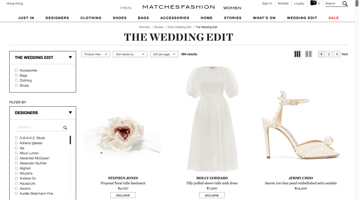 要買高質貨,我會選這兩家!我的婚紗就是在Matchesfashion買的,品牌暫時不能透露。Matchesfashion的送貨盒超精美,很有藝術感,一打開盒子會有一個Label ,人手寫上幫你處理這件貨品的員工的名字,讓冷冰冰的Online Shopping變得人性化!它更會不時與設計師品牌推出一些Exclusive的系列!