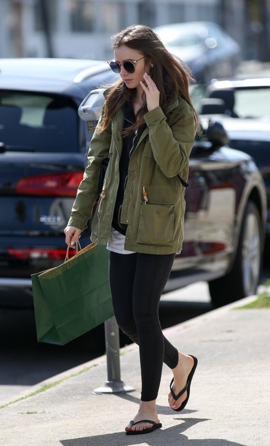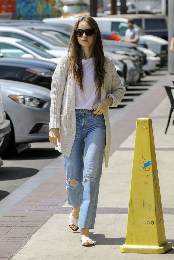 Lily Collins私底下的穿搭一點也不Emily!這絕對是對她的一種讚美。Lily私下不會穿Emily喜愛色彩繽紛及浮誇至極的服飾!反之,她愛穿寬鬆舒適、自然踏實的衣服。Boyfriend Jeans,平底鞋,簡單的黑白色Tee,還有立即提升星味的太陽眼鏡。看起來讓人的眼睛感到舒適,不像Emily般叫人看得很累。