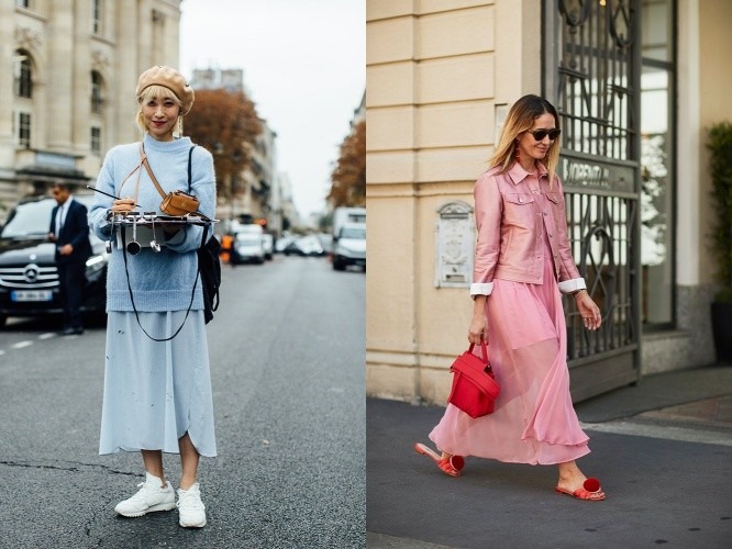 另外一個最簡單又時尚的穿Pastel之法,就是全身都穿上同一色系的單品,今個初秋可以選Sky Blue或Baby Pink的時尚色系,上身加搭上溫和風毛衣,下身則是輕盈風雪紡裙子,加一頂畫家帽子或是一個鮮艷的手袋,整個造型立即提升。